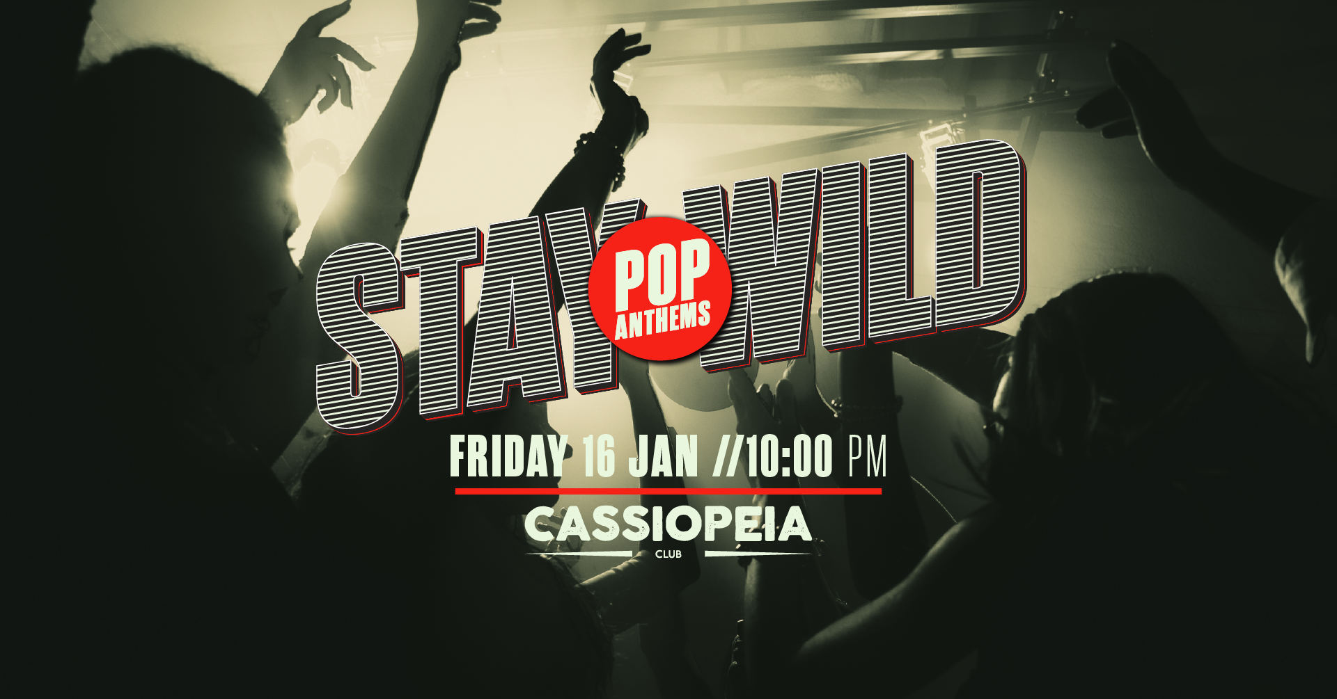 Von guilty pleasures bis zu legendären Classics! Pop nonstop auf 2 Floors. Schnapp dir deine Freundinnen, shake den Winterblues ab und feier mit uns im Cassiopeia Club Berlin bis die Sohlen glühen. Stay wild. Stay pop. Stay dancing. 2 Floors | Pop all night long